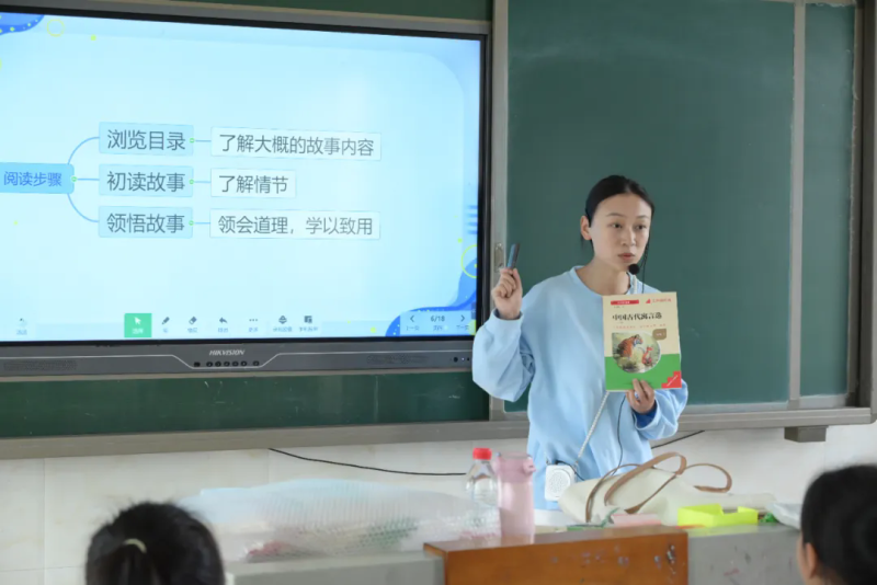 阅读推广人汤诗茵以《中国古代寓言选》为阅读范本展开教学。她翻开书页,耐心细致地引导孩子们观察目录,“这些有趣的故事,小朋友们以前听过吗?”通过互动式、启发式的教学方式,不断激发孩子们的思考。孩子们踊跃举手,清脆的回答声此起彼伏,对阅读的浓厚兴趣也被点燃了。这种生动有趣、气氛热烈的课堂形式,赢得了师生们的一致好评。随后,民革益阳市委会还现场开展了赠书活动,为孩子们送上了一份充满书香的礼物。