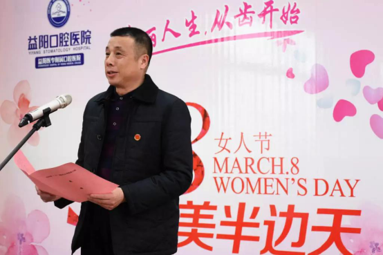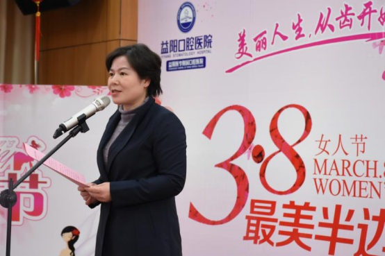 黄东红代表民革益阳市委会向与会的女同胞致以节日的问候和祝福。她表示,各位姐妹在我市各条战线上、在一个个平凡的岗位上,用自己的勤劳和智慧书写了不平凡的业绩,展现了新时代女性独立自强,积极拼搏、柔美亲和的新形象,她由衷地为大家感到骄傲和自豪。并希望通过举办这次口腔健康知识讲座、免费检查等活动,让大家树立正确的健康观念,养成良好的口腔保健习惯,从而带动家庭成员和身边的朋友共同关注健康问题,为美好人生打下坚实的基础。