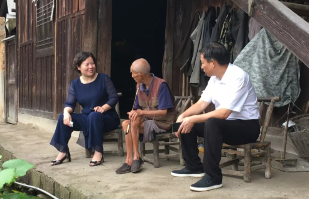 29日清晨,伴随着淅淅沥沥的小雨,黄东红一行吃完早餐便开始了一天的走访行程,每到一户她都详细询问他们的生产生活情况和相关扶贫政策的落实情况,鼓励贫困户牢固树立脱贫致富的信心和面对困难的勇气。在村民蒋成详家中,黄东红主动与92岁的蒋老拉起了家常,了解老人的健康状况和家庭情况,看到村上农网改造和公路扩改进行得热火朝天,老人直夸党的政策好。